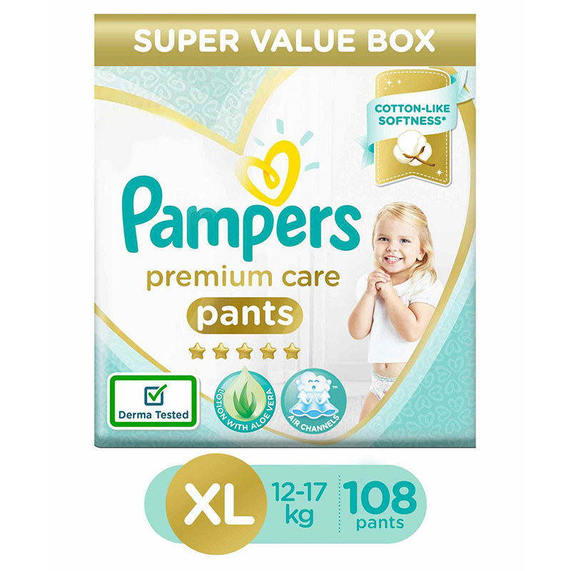 Pampers Premium Care Pants, XL Size Baby Diapers - 108 Counts